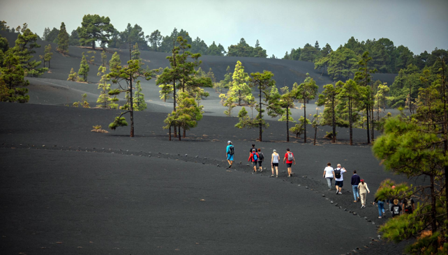 „Transvulcania für Einsteiger“, sportlicher Trailrun auf etwa 1.500 m Meereshöhe, MITTELSCHWER: 6,2 km, je 325 Höhenmeter Auf und Ab , inkl. PKW-Transfer zum Start- und Zielpunkt, 9-13 Uhr